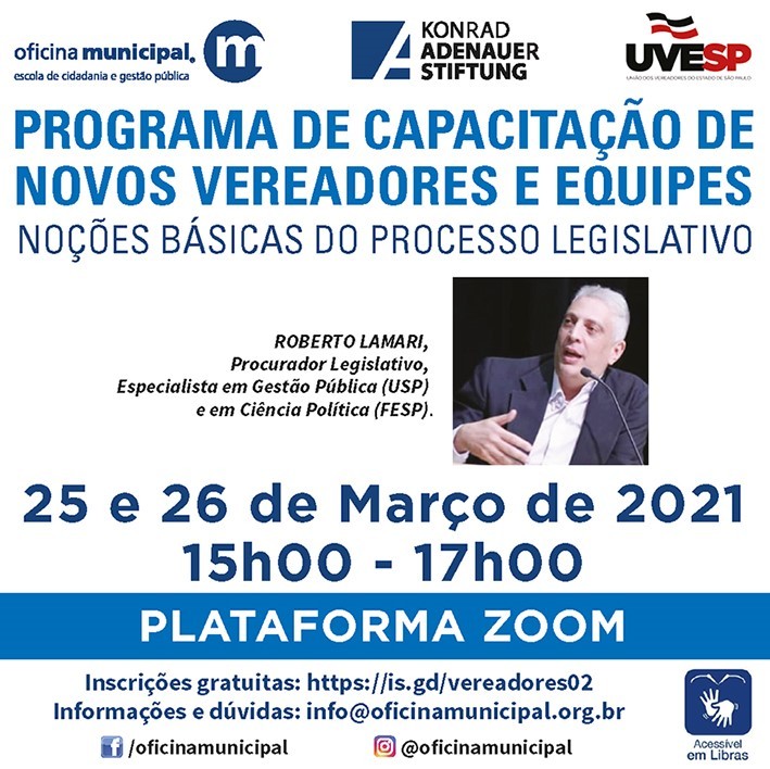 A Escola do Legislativo de Guarujá (ELG) inicia, a partir desta quarta-feira (24/11/2021), Curso gratuito de Libras - Língua Brasileira de Sinais, ministrado pelo pedagogo especializado em Inclusão Social, Sinval Soares.
