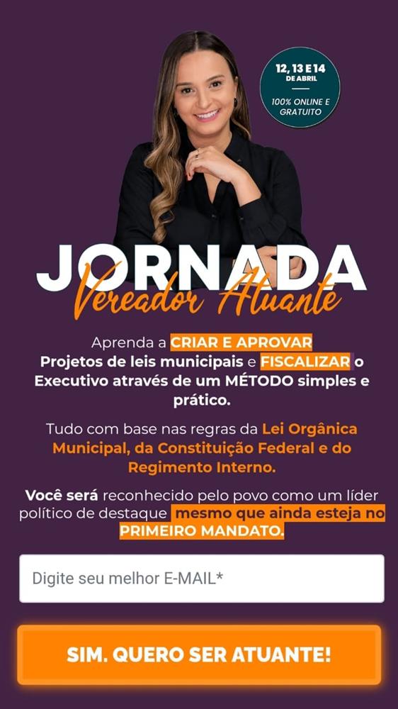 A Escola do Legislativo de Guarujá convida a todos para participar da JORNADA DO VEREADOR ATUANTE – Aprenda a CRIAR E APROVAR projetos de leis municipais e FISCALIZAR o Executivo através de um método simples e prático. Tudo com base nas regras da Lei Orgânica Municipal, da Constituição Federal e do Regimento Interno - desenvolvido e realizado pelo INSTITUTO BRASILEIRO DE POLÍTICA MUNICIPAL – IBPOM, através da Professora Monica Lopes.